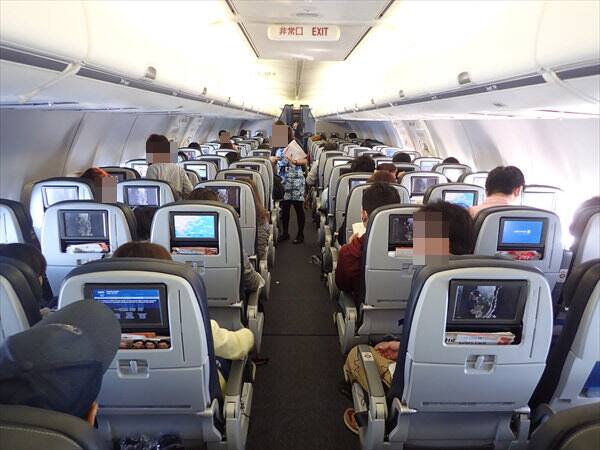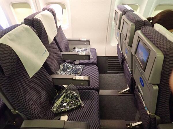 実際にエコノミープラス席に座ってみますと思ったよりも前後の余裕は少ないと思いました。