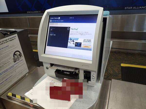 ユナイテッドのチェックイン機は初めてでしたからやはり間違えてしまい手間取ってしまいました。