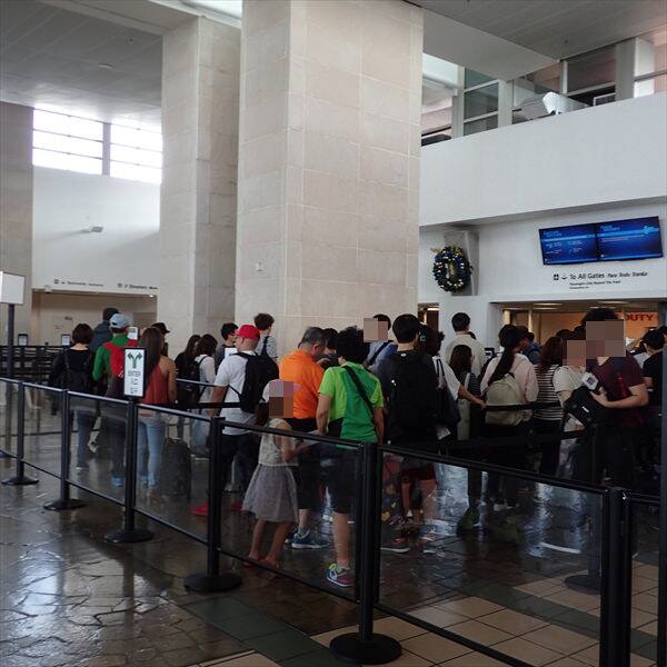 グアムの出国手続きではプレミアムアクセスはとても効果的で、出国のためかなりの方が並んでいる列を横目に、とても空いているレーンで出国手続きができました。