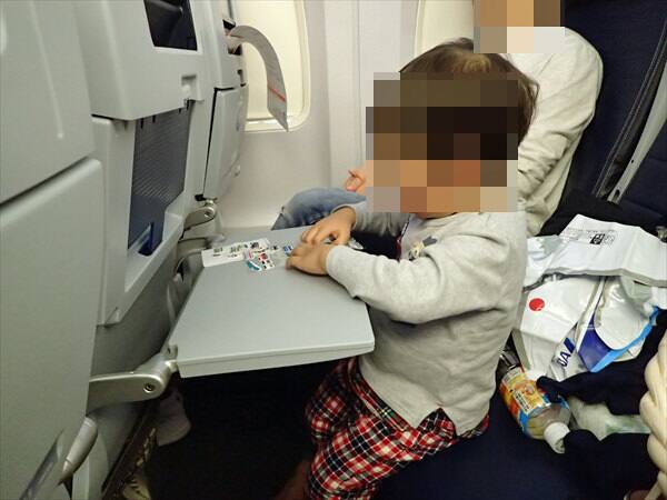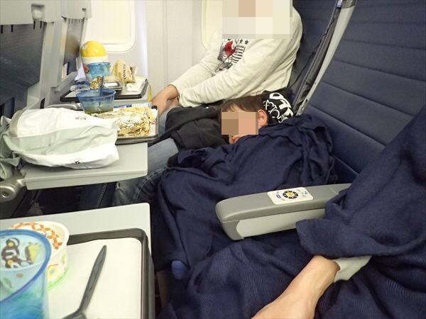 搭乗して安定飛行になる前に子供は遊び疲れたので寝てしまいました。