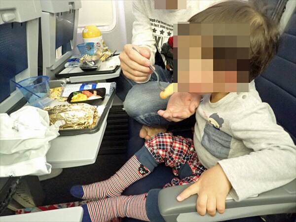 親は食事が終わった後でしたからゆっくりと子供に機内食を食べさせることができました。