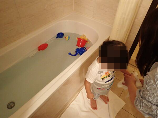 そのためお風呂で明日からのビーチで遊ぶセットを出してあげましたら楽しんでいました。