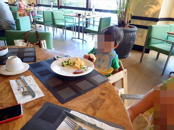 その間あやすのが大変ですから、席に付けばすぐに料理をとって食べることが出来るビュッフェレストラン利用としました。