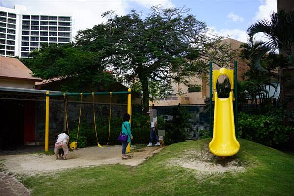 今回はABCストアーで飲み物と軽食を買ってオハナビーチクラブの横にありますブランコとすべり台で子供を遊ばせました。