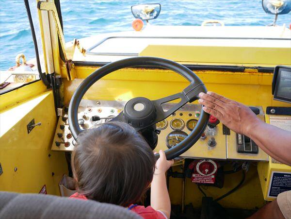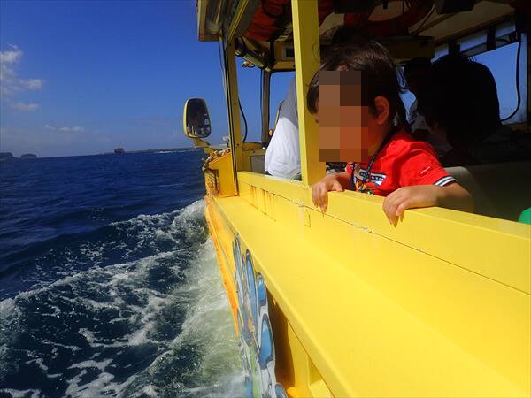 イルカウォッチングの様なスピード感はありませんが、バスが海を進むことが面白いものでした。