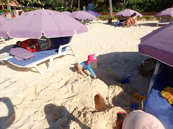 今日も日陰で砂遊びするためにパラソルを借りました。