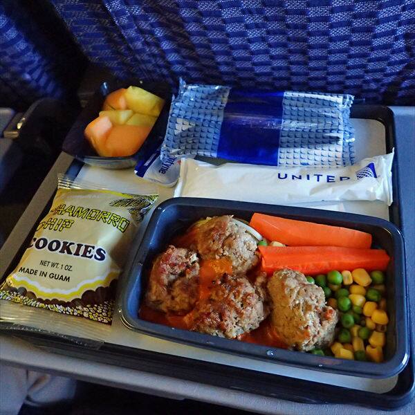 帰国時のユナイテッド航空の機内食は夕食となっていますので往路よりはまともでした。