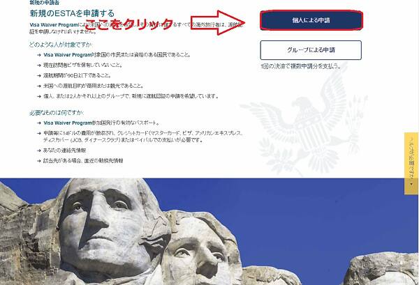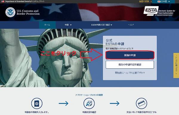 こちらをクリックすればESTAの申請ができるサイトに行くことができます。