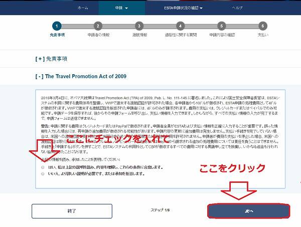 ESTAのサイトを使用するにさいしての同意を求められますので確認をして実行をクリックして進みます。