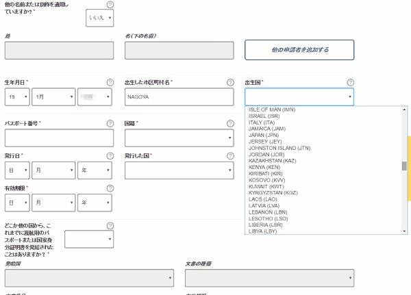 出生した市町村名はローマ字で入力して、国名はまた選びます。