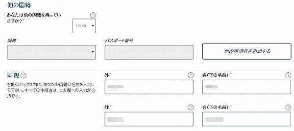 他の国籍もいいえを入力して次に両親の名前をローマ字で記入します。