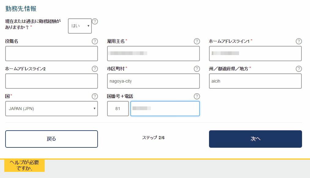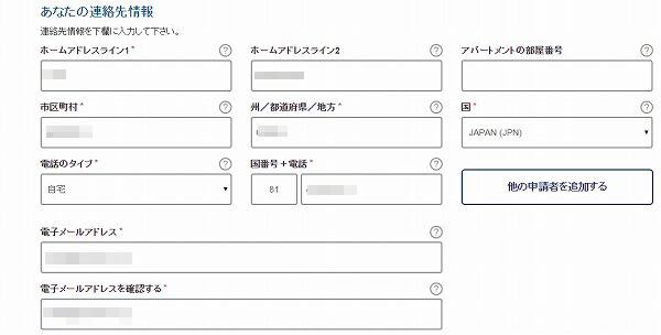 ホームアドレスライン1とホームアドレスライン2の記入が私もわからなかったのですが、ホームアドレスライン1は番地と町名を入れます。