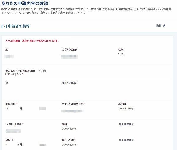 そして最後に確認としてパスポート番号と発行した国などを入力するサイトになります。