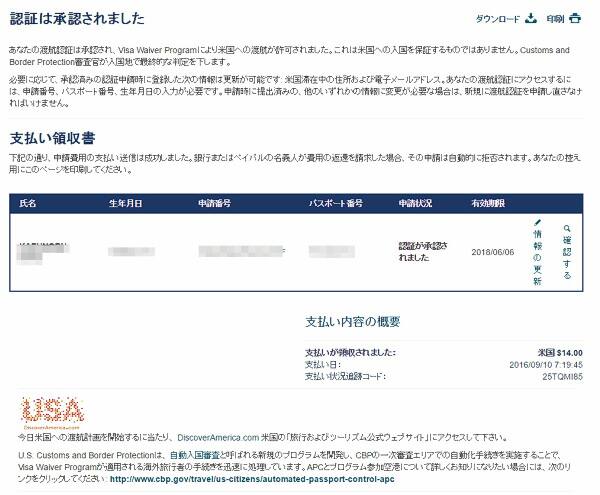 これでESTAの申請はおわりですが、承認の画面を印刷しておけば後で内容確認に便利なのではないでしょうか。