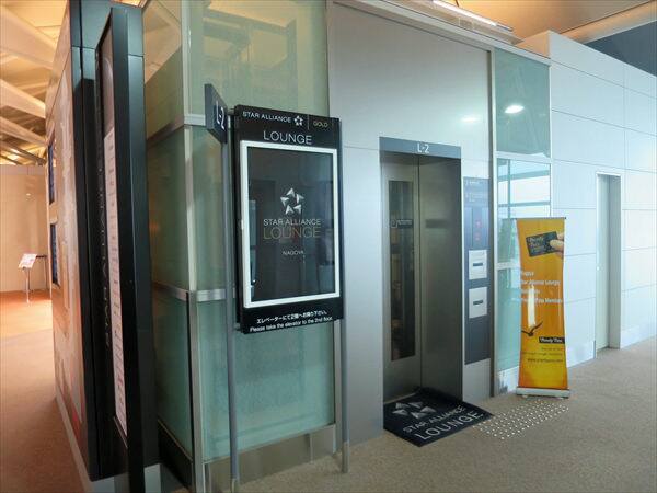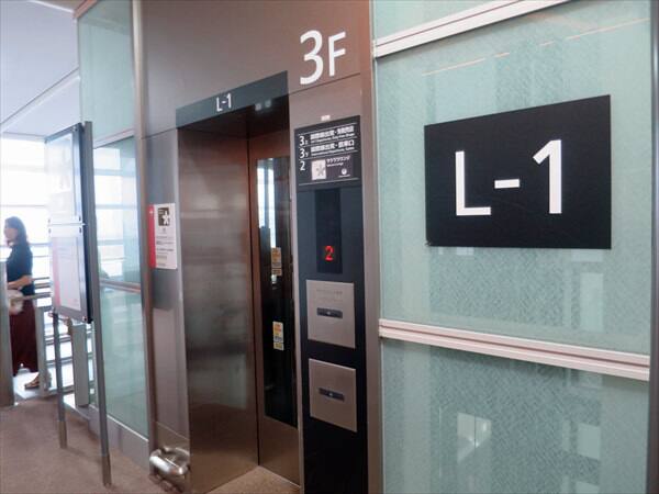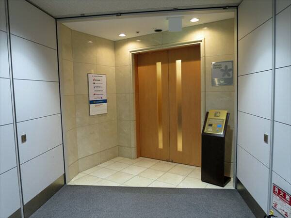 エレベーターはスターアライアンスのラウンジ行きとサクララウンジ行きが向かい合って設置されています。