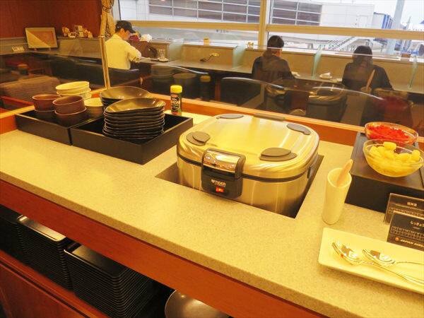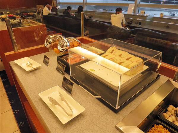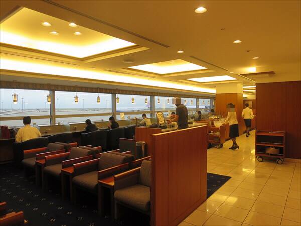 機内のビジネスクラスでもスパークリングワインや食事がでますので、こちらではあまり食べ過ぎないようにした方が良いと思います。