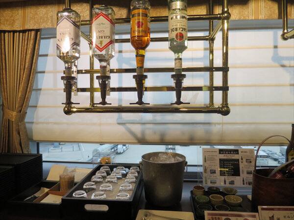 飲み物はスパークリングワインを頂きましたが、ビール以外のアルコール類は奥のバーの雰囲気がある部屋にセットされていました。