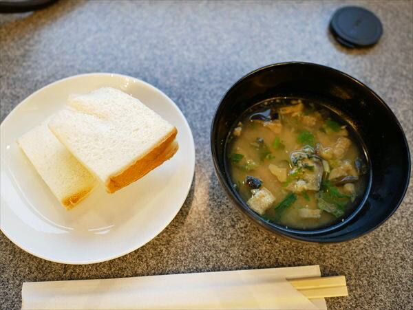 同行者は味噌汁に食パンというラウンジとは思えない朝食でしたので、思わず笑ってしまいました。