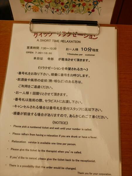 ラウンジの設備としてクイックリラクゼーションの部屋がありました。