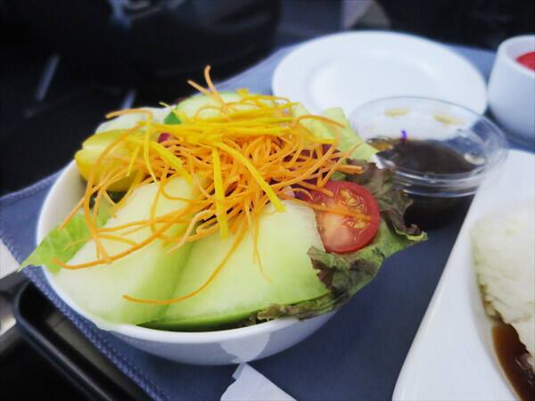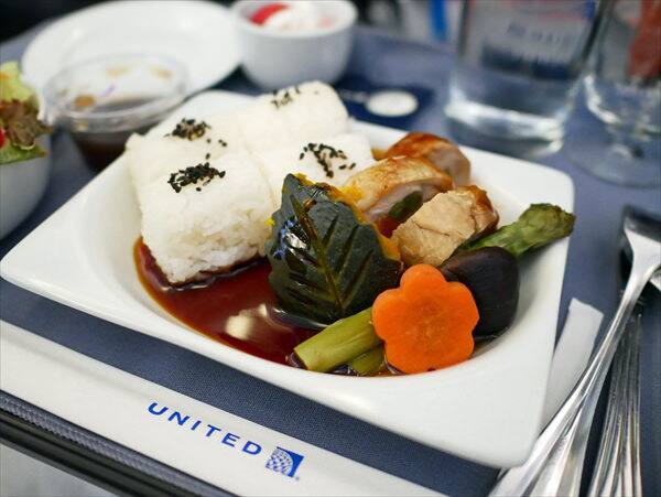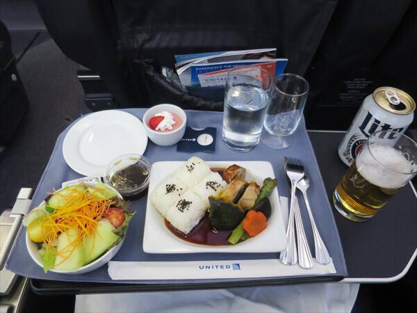 今回のグアム旅行では行きは午前便、帰りは午後便を選びましたので行きはランチ、帰りはディナーがでました。