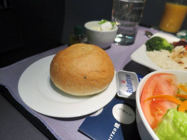 チキンにはご飯、フィッシュにはパスタが付いていたのですがパンも配られます。