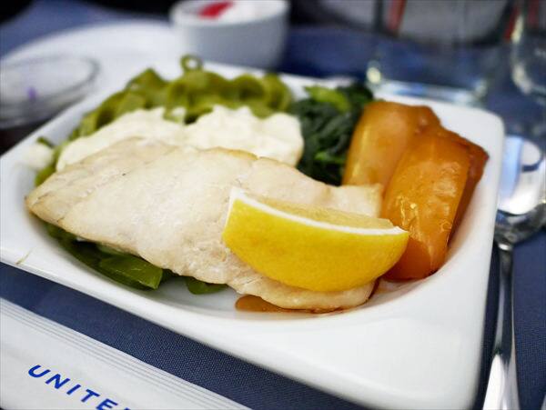食事の前はビールとし、食事はチキンとフィッシュから選べました。