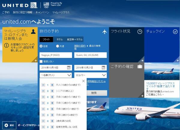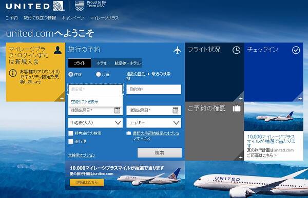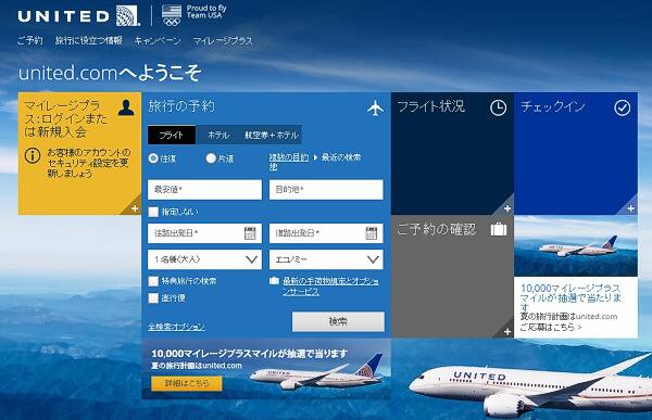 ユナイテッド航空のホームページから画像をお借りして順番に説明させて頂きます。