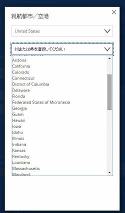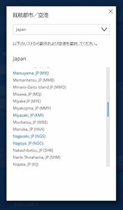 そうしますと以下のリストから都市および空港を選択してください。という表示と共に日本の空港が表示されます。