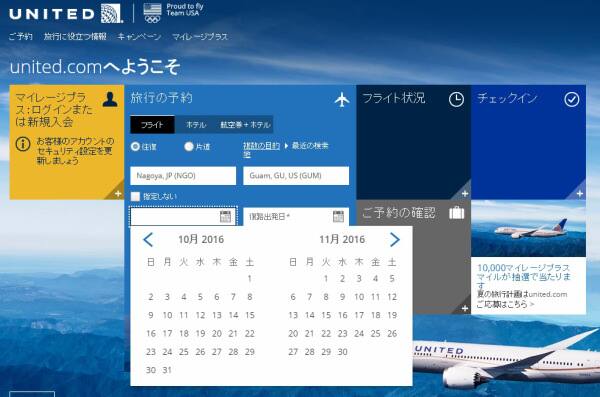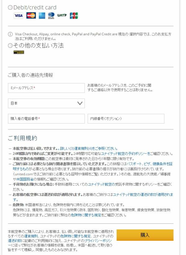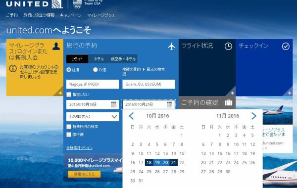 デルタ航空での個人手配旅行の時にホームページから航空券を購入するのは意外に簡単でしたので、今回初めてユナイテッド航空のホームページから購入することに挑戦しました。