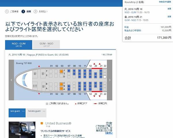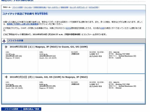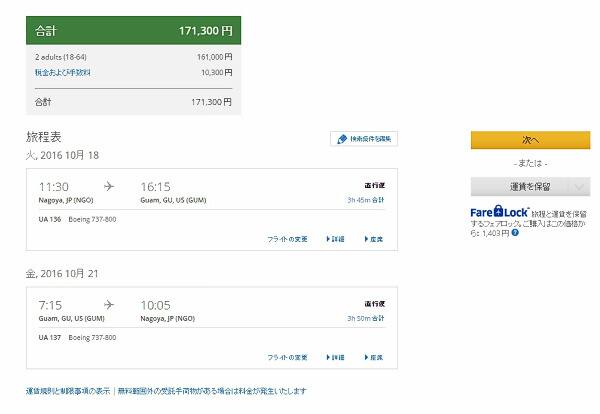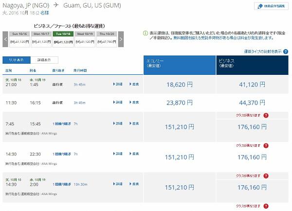 これで「検索」を押せばグアム旅行予定日の飛行機の空席がわかります。