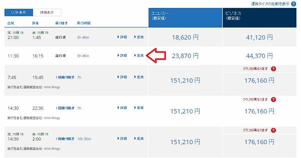 空席が多いのでこちらの便でしたら購入できますのでこの便を選択しましょう。