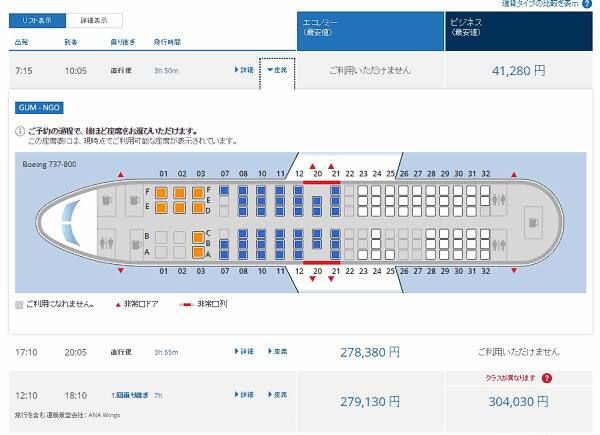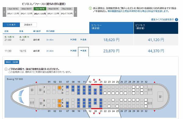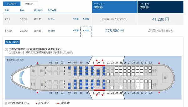 残念ながら17:10の便はビジネスクラスが無いようですので空席を確認しましょう。
