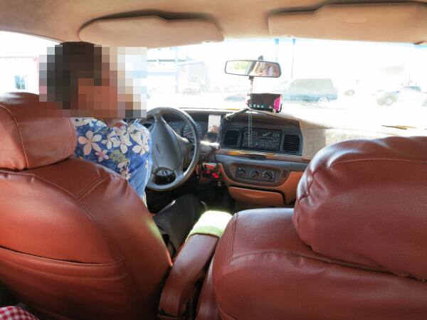 古いアメ車のタクシーに前回はマイクロネシアモールから乗りましたが、炎天下の駐車場にエアコンもかけずに停車いていたタクシーに案内されましたので、車内はとても暑かったのです。