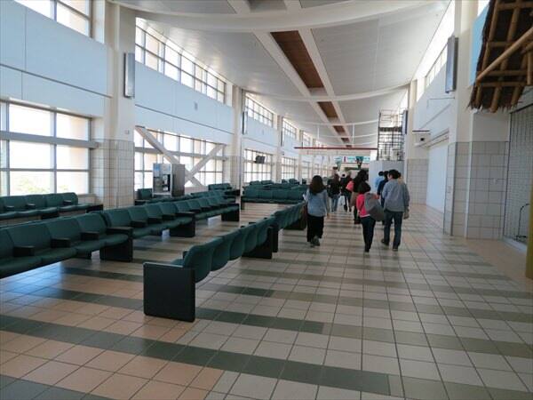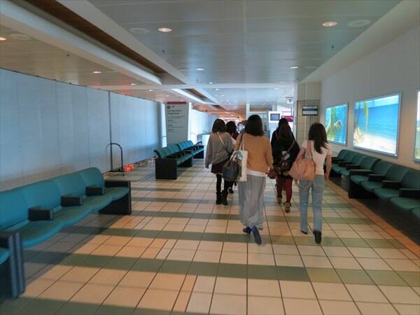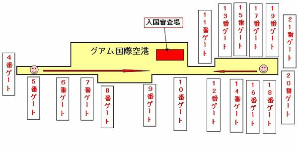グアム国際空港に日本からの乗ってきた飛行機が到着したら、ゲートを通ってグアム国際空港の中の通路を入国審査場に向かいます。