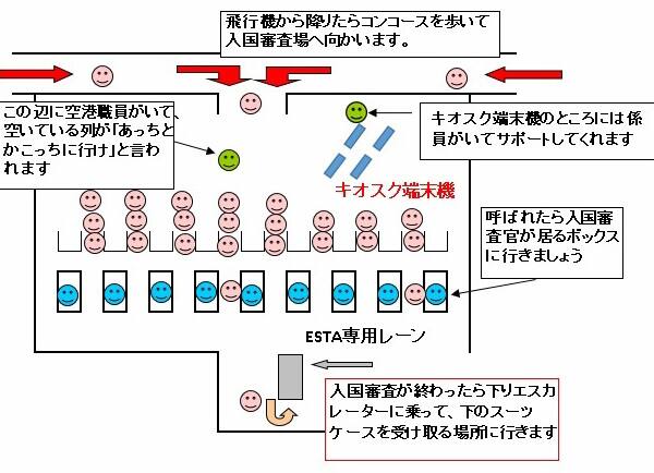 入国審査場に入りましたら左手がESTA取得をされた方のレーンとなっています。