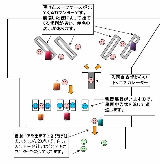 エスカレーターを下りますと左右に機内に預けたスーツケースなどが流れてくるカウンターがあります。