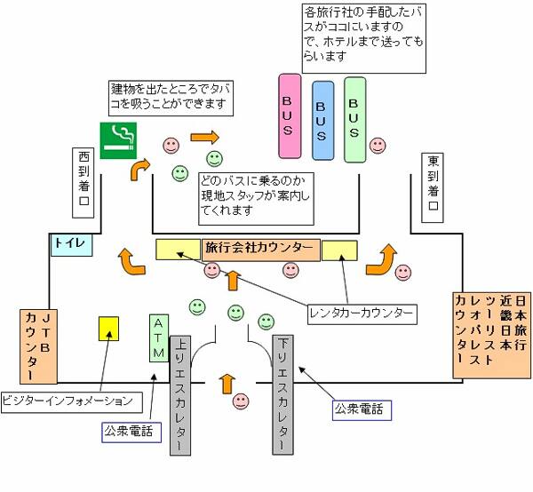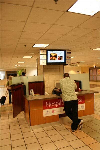 ツアーの方は利用しているツアー会社のカウンターに行きますが、個人手配旅行の方はインフォメーションカウンターのスタッフがホテルの送迎の窓口になっていました。