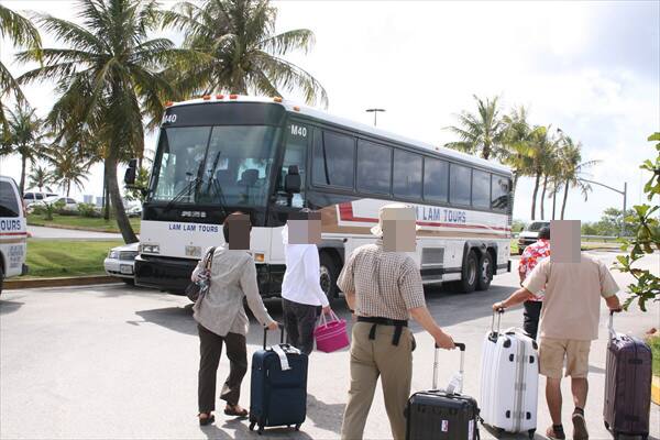 現地スタッフに連れられて到着口から出ますとそこにはバスが待っていますので、指示されたバスに乗って各ホテルまで送ってもらうのです。