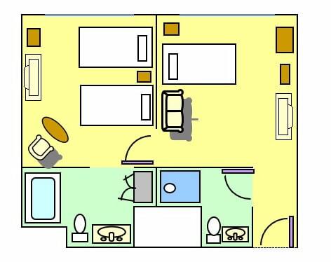 ファミリー・ルームは海側ではなくホテルロード側の2階から8階の部屋で、ベランダがありません。