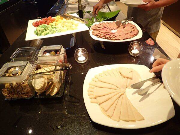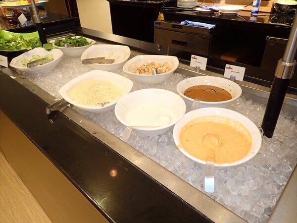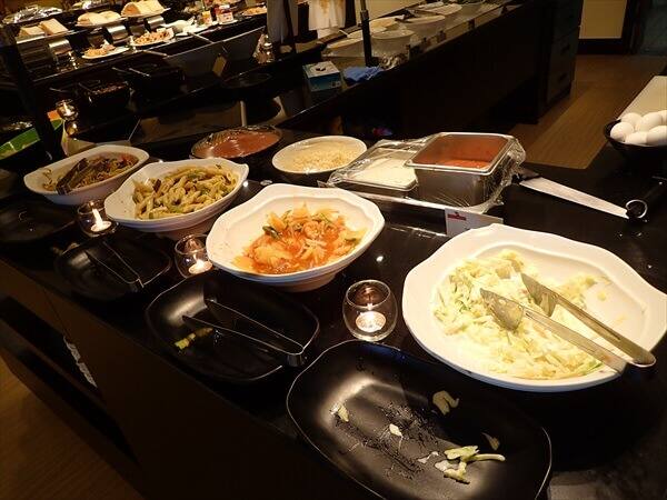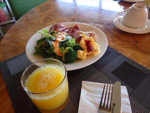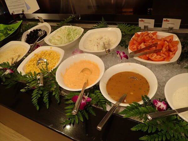 パームカフェの朝食で気になったには1日目のサラダにトマトが無かったことや野菜の種類が少なかったこと、トマトジュースがありませんのでコストがかかるものが置いていないのではと思ったことです。