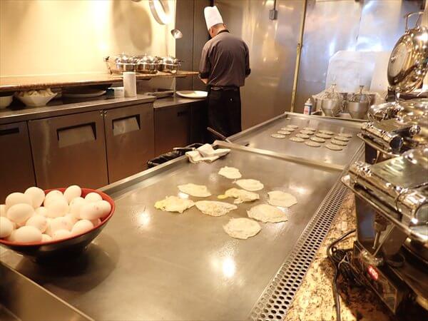 鉄板ではスタッフが目玉焼きを作っていましたが、ひっくり返してしっかり焼いていました。