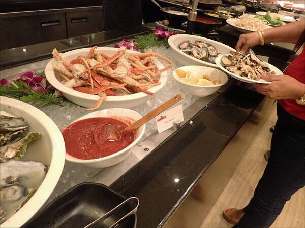 ビュッフェ料理のテーマは日曜日から木曜日がインターナショナルで、金曜日はシーフード、土曜日が蟹とプライムリブとなっています。