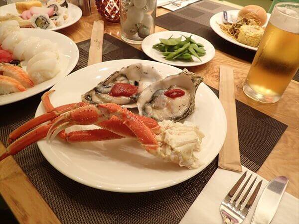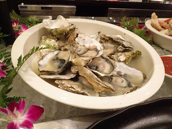 パームカフェでのディナーで一番良かったのは生牡蠣がぷっくりとした大きいものが並べられていて、とても美味しく頂くことができました。