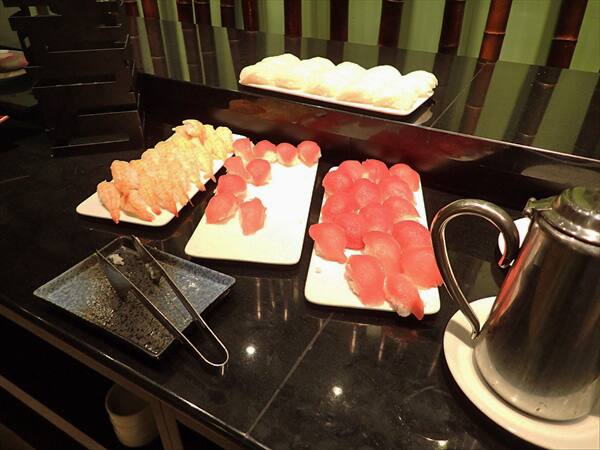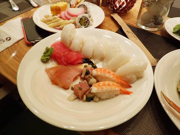 マグロの刺し身やポキも用意されていますし、握り寿司やロール寿司も並べられています。