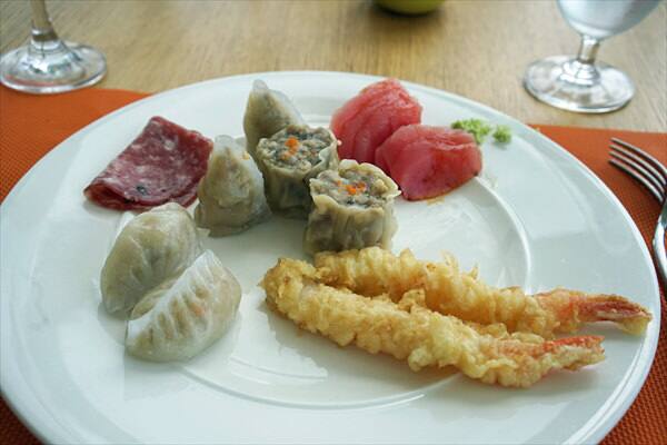 点心やエビの天ぷらも食べましたが、後で考えますとカニとマグロの刺身と生牡蠣にスパークリングワインばかり食べて飲んでいました。