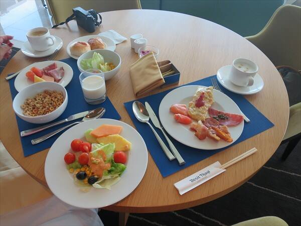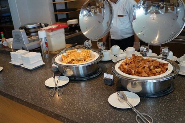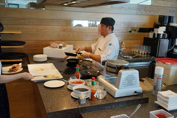 クラブラウンジの朝食の内容はビュッフェレストラン程豪華ではありませんが、オムレツやスクランブルエッグ、目玉焼きを焼いてくれるスタッフも居て出来立てを頂くことができました。