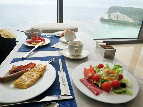 5つ星ホテルのデュシタニのクラブルームの朝食は個人的にはとても満足できましたし、タモン湾の景色を楽しみながらゆっくり食事ができましたので、グアムのホテルで一番良いと感じました。