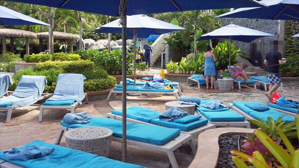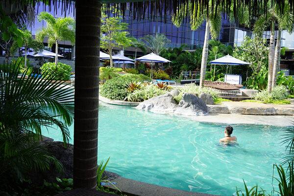 グアムにはプールが充実したホテルが何軒かありますが、デュシタニグアムのプールは泳いだりして楽しむよりもプールに設置されている木陰やガゼボのチェアなどでゆっくりくつろぐといったコンセプトなのでしょう。