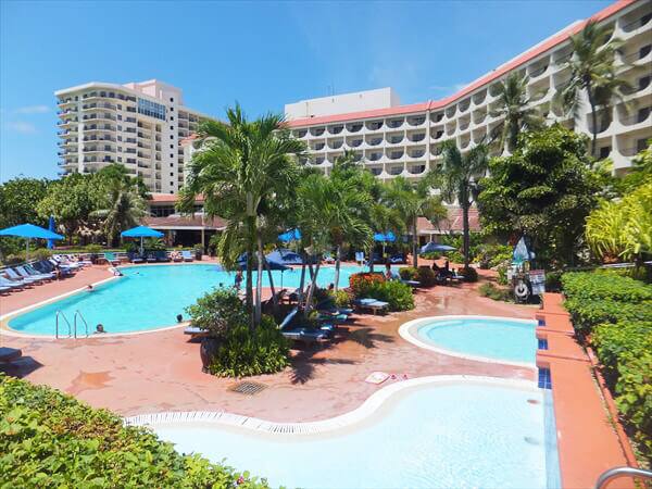 ヒルトンでリーズナブルな部屋に宿泊しても、プールやビーチからタモン湾の景色を十分に楽しむことができます。