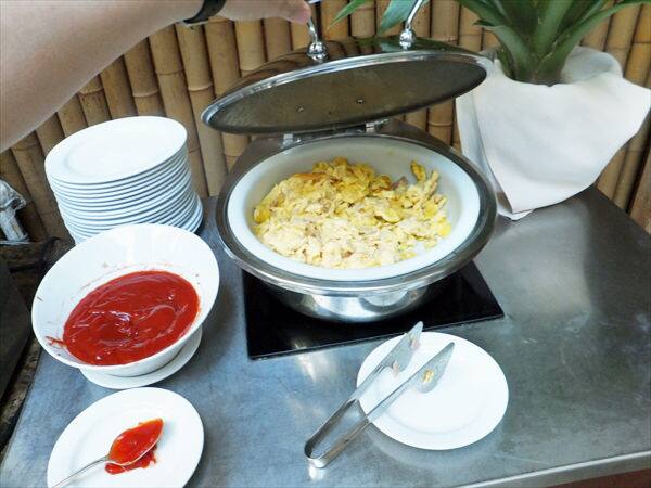 グアムのホテルのビュッフェレストランでは卵料理を自分の好きなトッピングで作ってもらうというのも楽しみですが、こういったものを望むのは無理ということで、ラウンジではスクランブルエッグのみとなっていました。